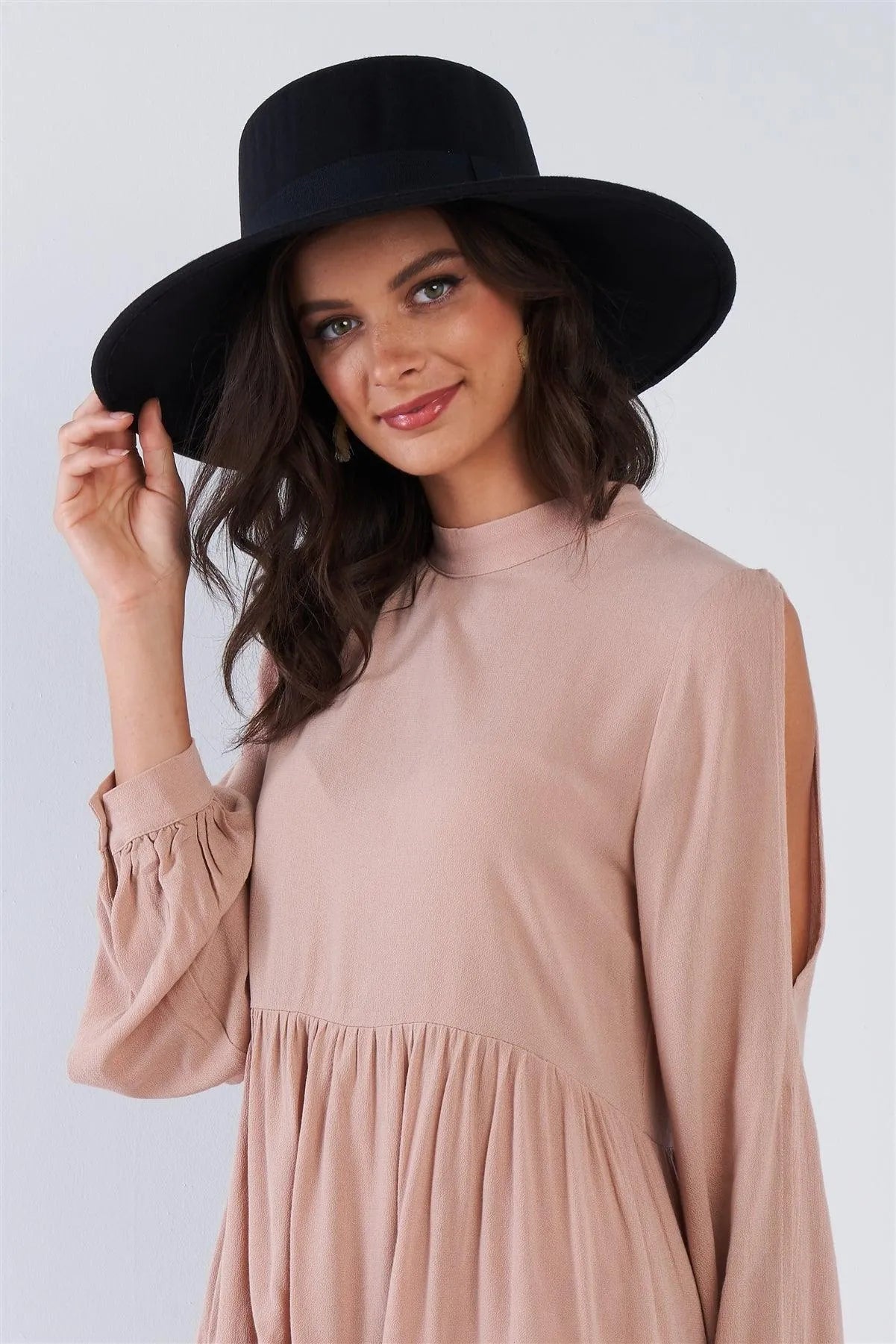 Black Felt Wide Brim Hat With Black Ribbon Band /1 Piece