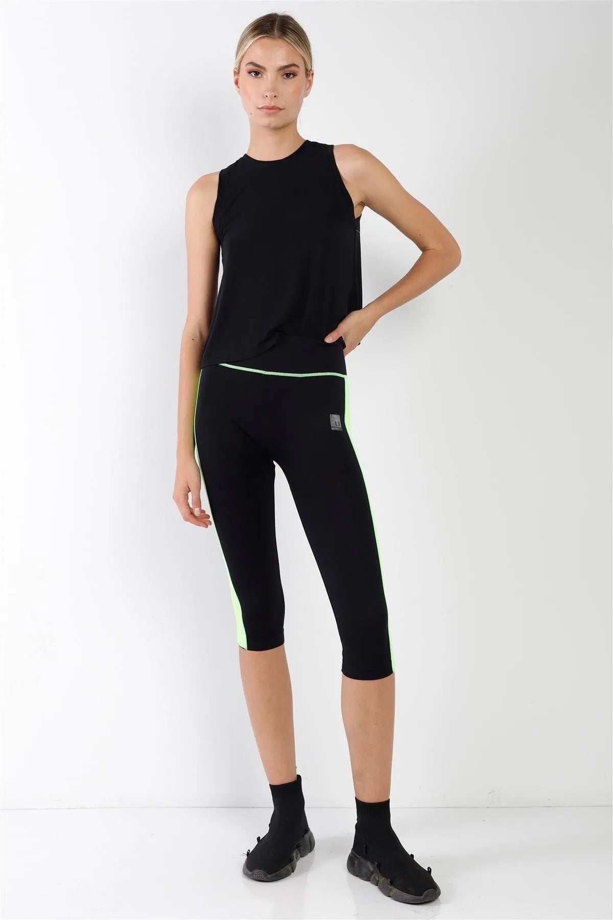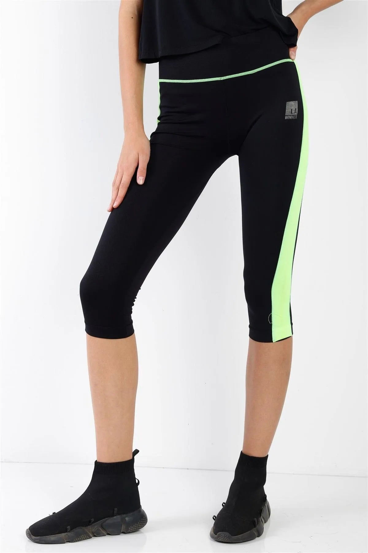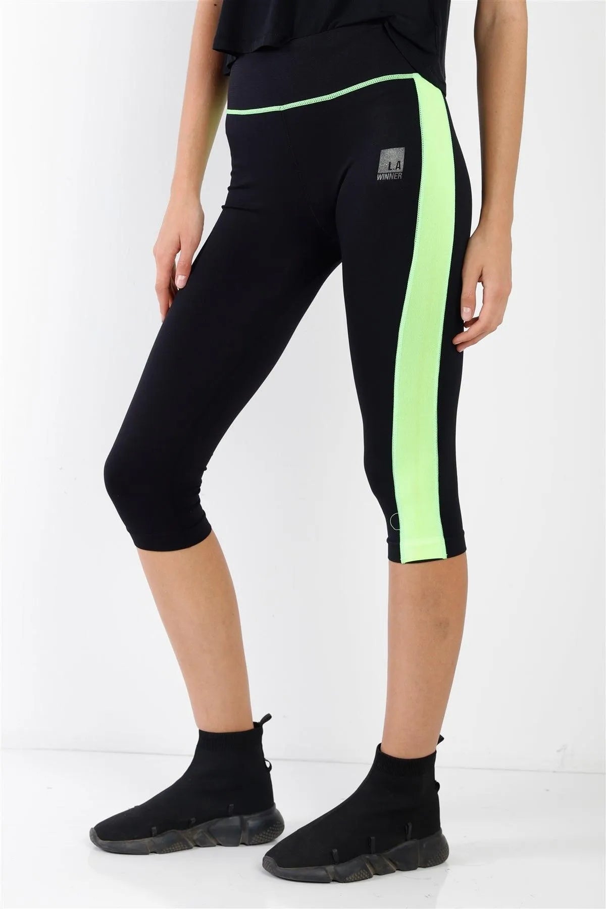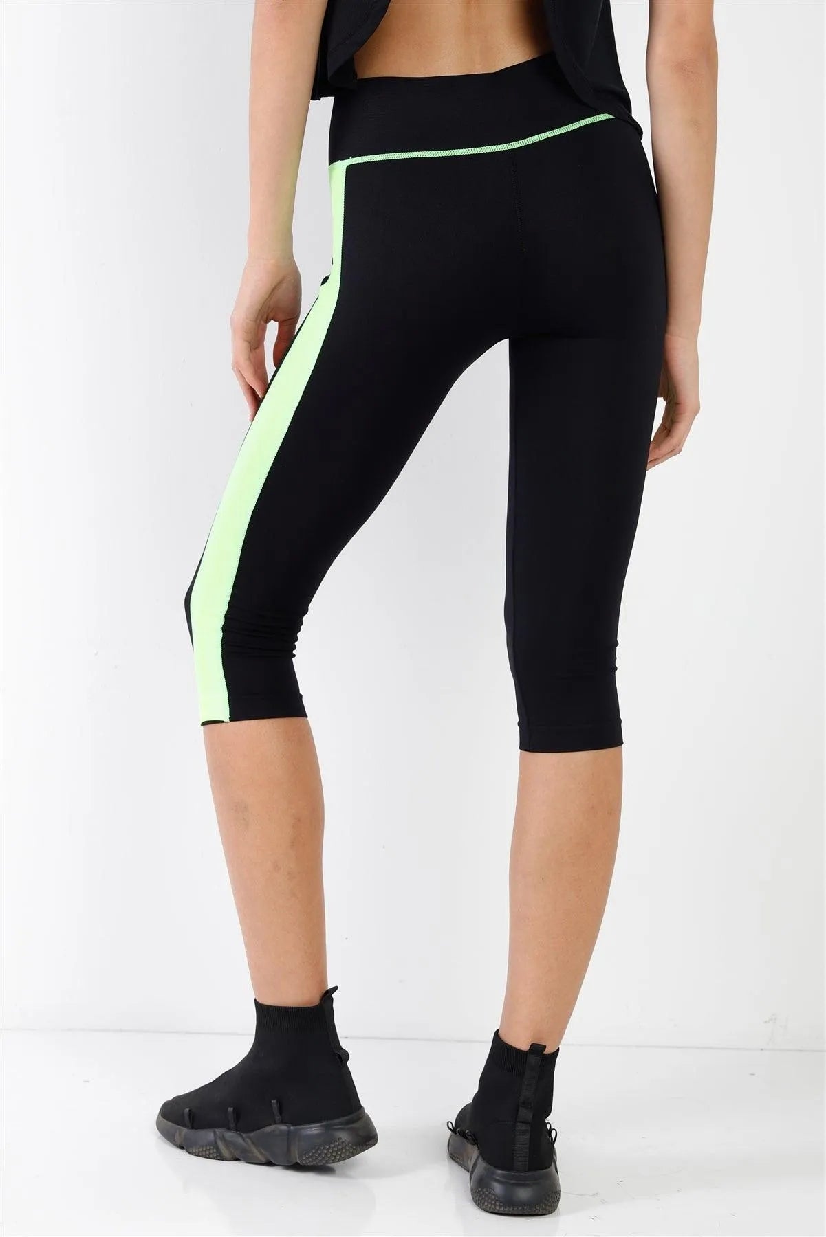 Black Green Contrast Stripe Active Sporty Leggings /5-5