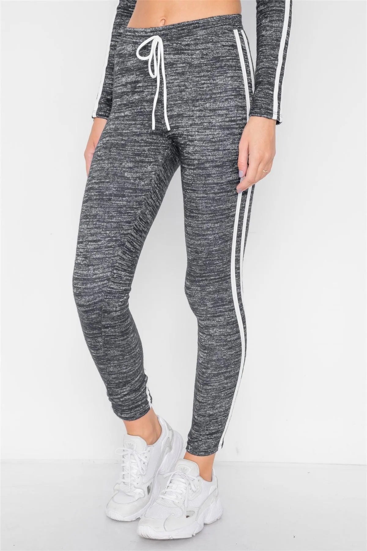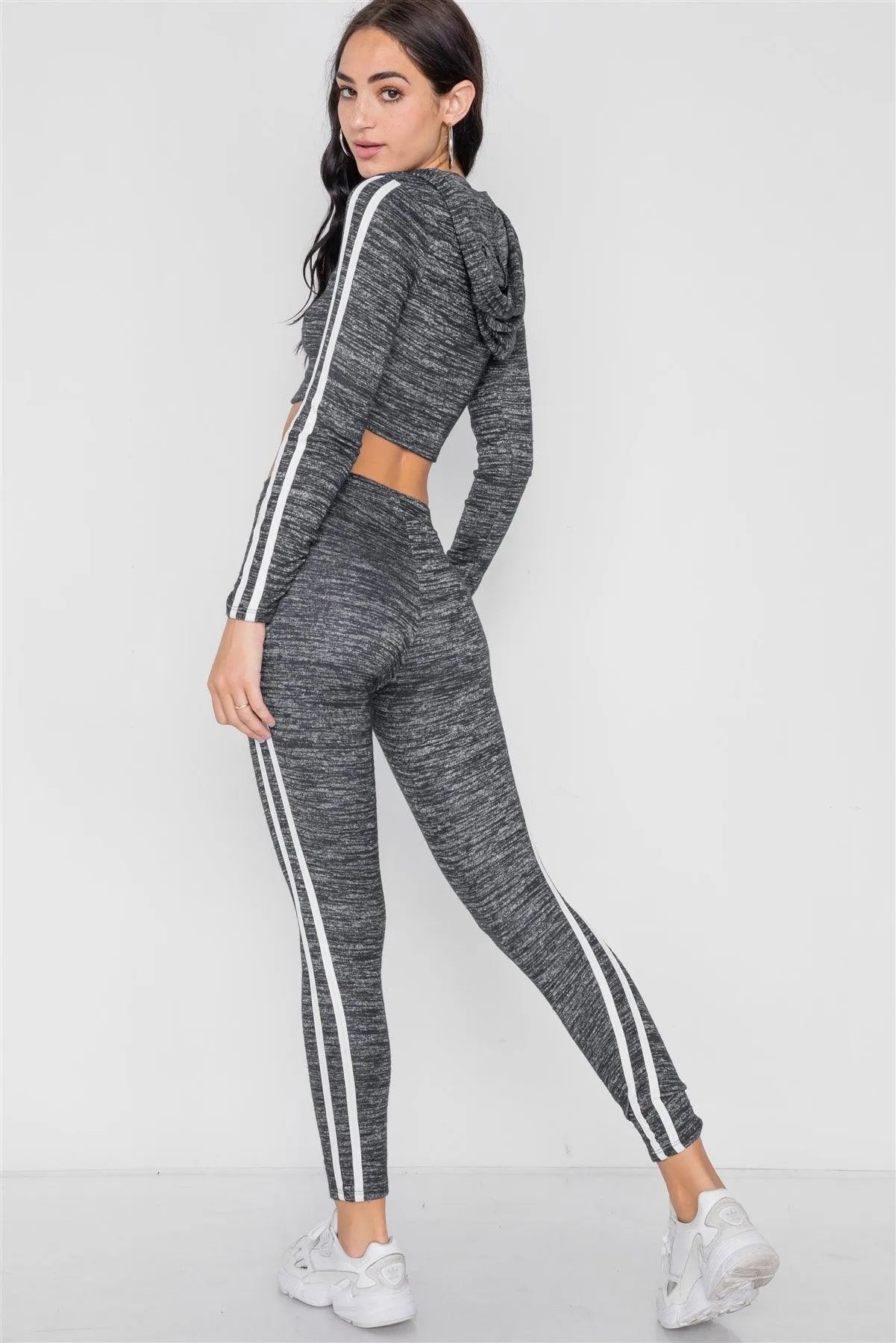 Black Heathered Crop Top Legging Two Piece Set /2-2-2