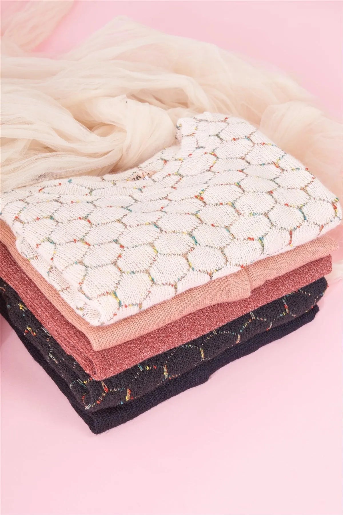 Black Hexagon Pattern Cropped Pullover Long Sleeve Knit Top /2-3