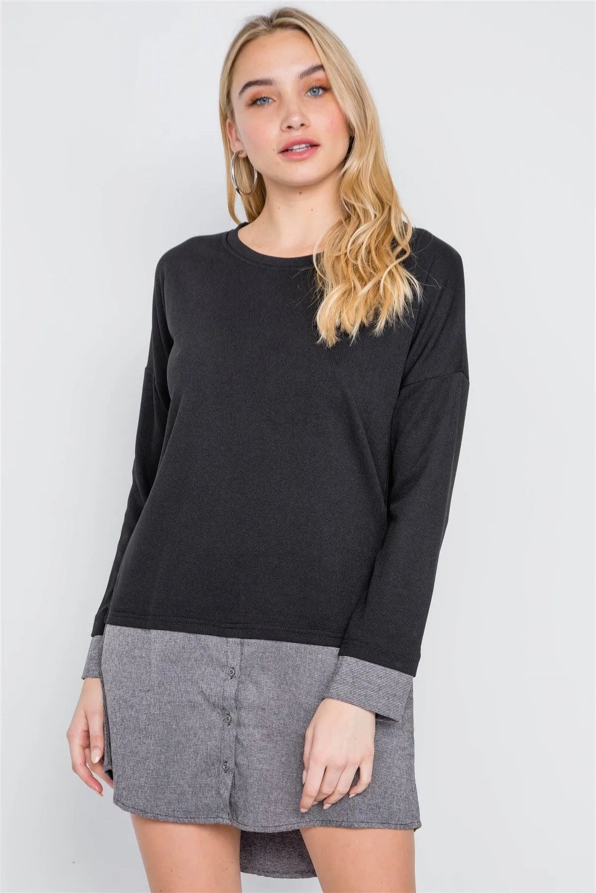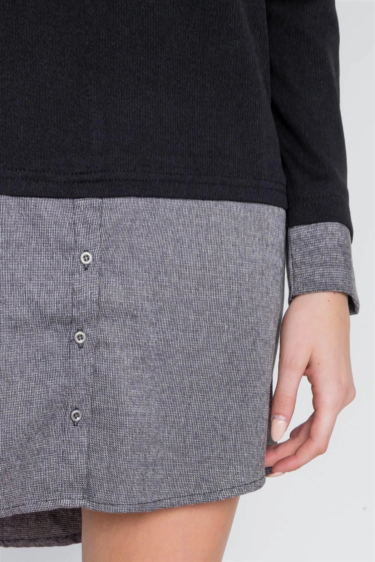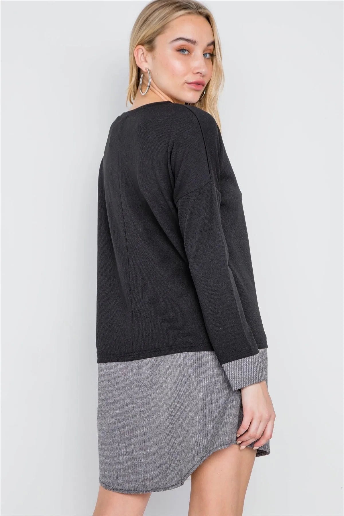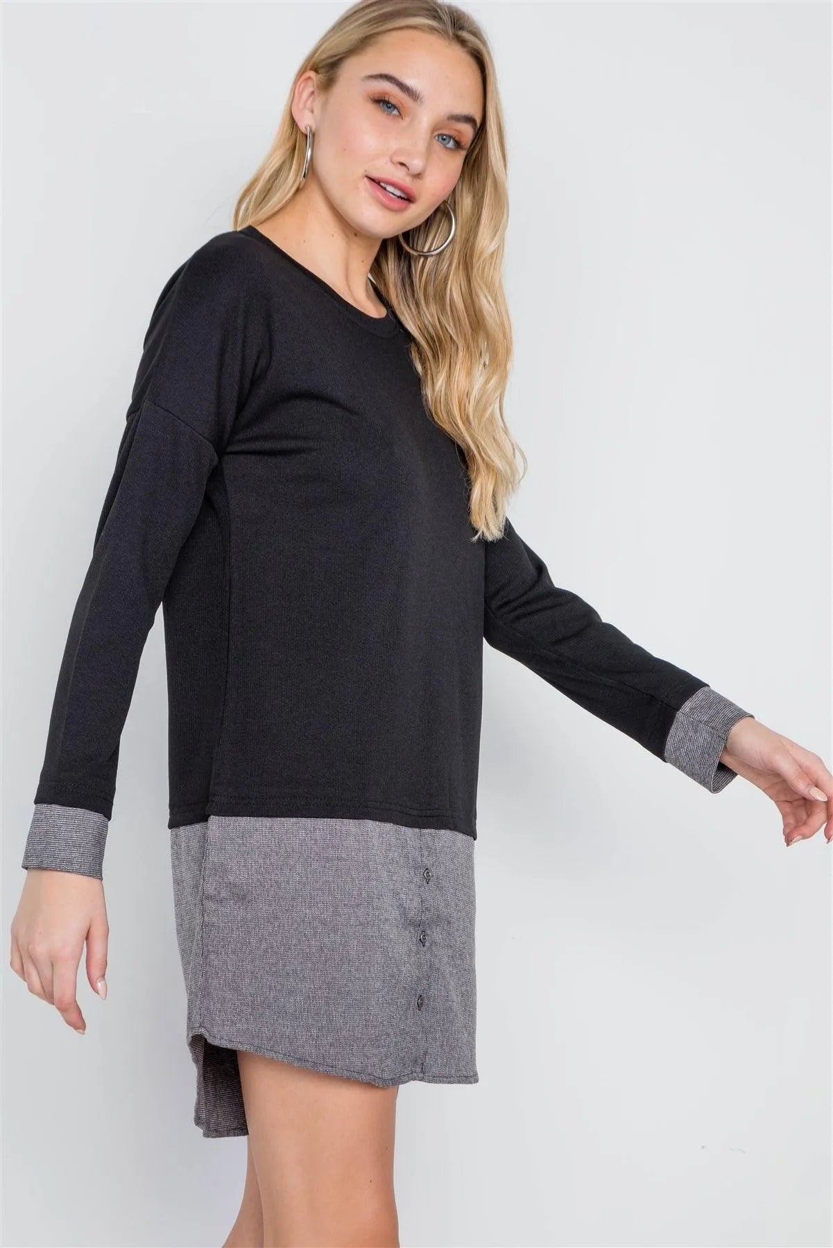 Black Knit Combo Long Sleeve Sweater Dress /1-3-2