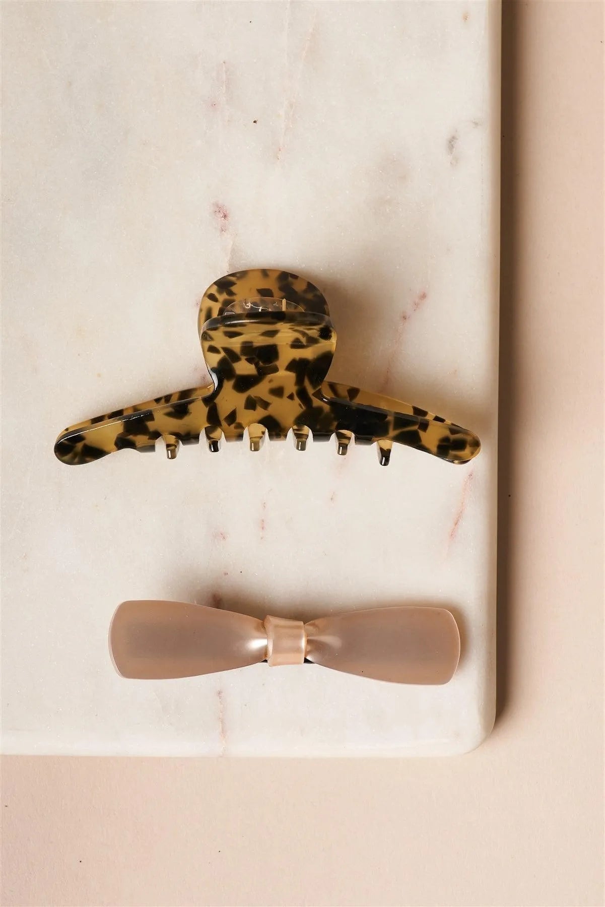 🖤 Cheetah print butterfly clip and icy pink bow tie barrette