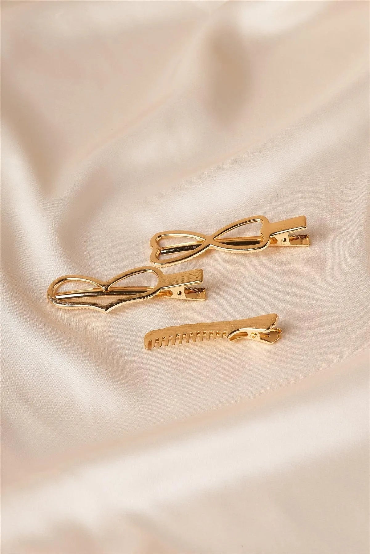 3pcs Gold Heart Shaped Hollow Hair Clips