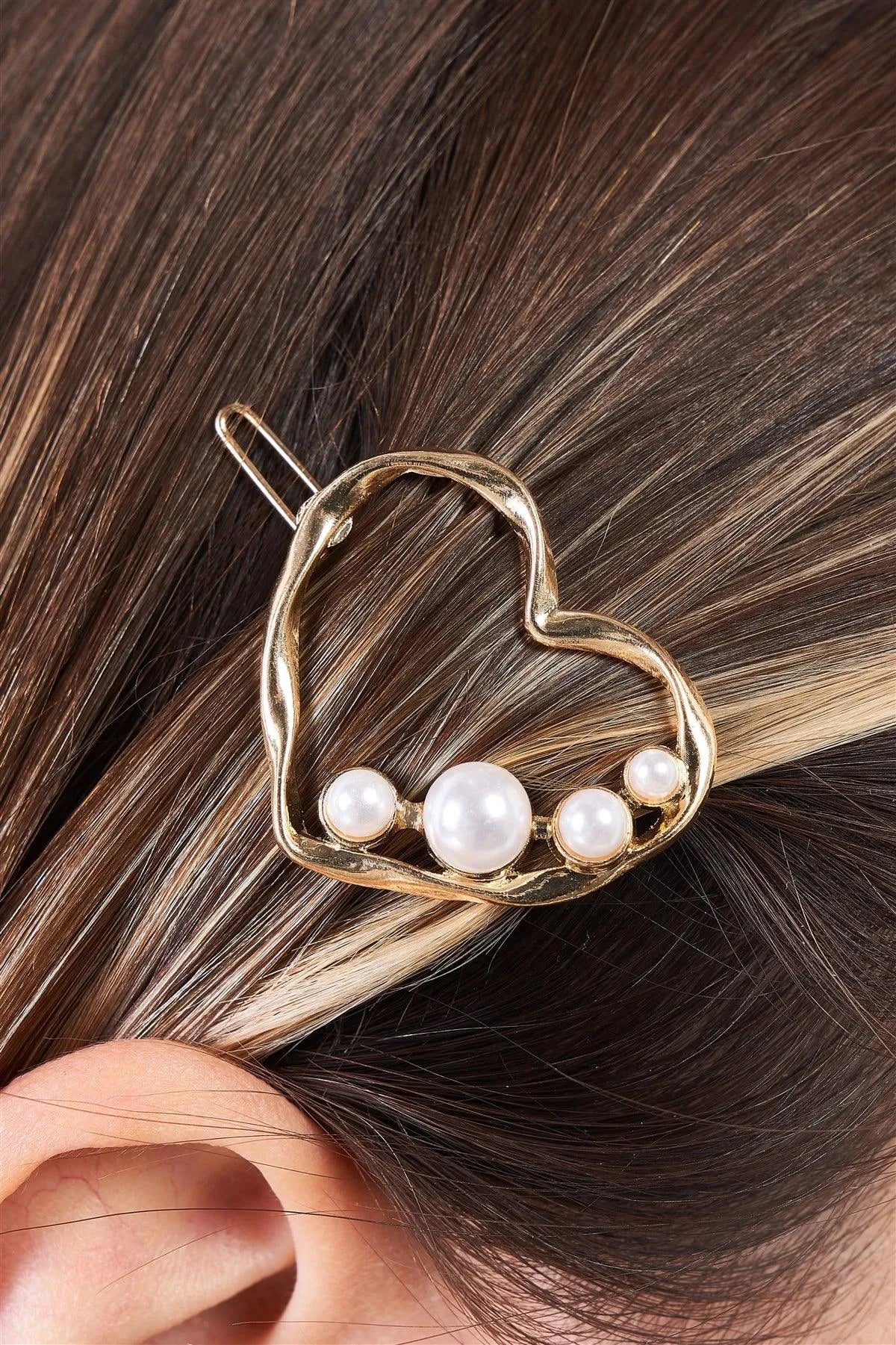 1pcs Gold Pearl Twisted Heart Shaped Hair Clip