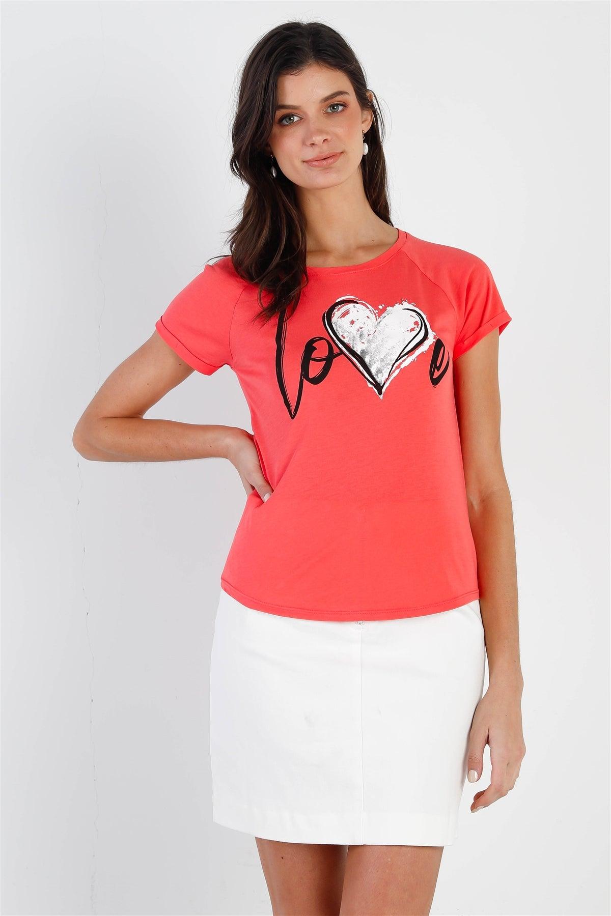 "Love" Print Coral Short Sleeve T-Shirt Top /1-1-2