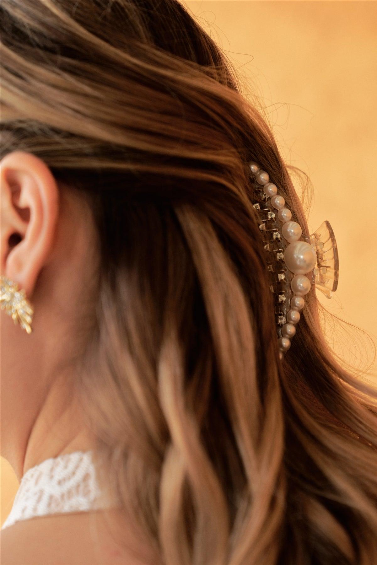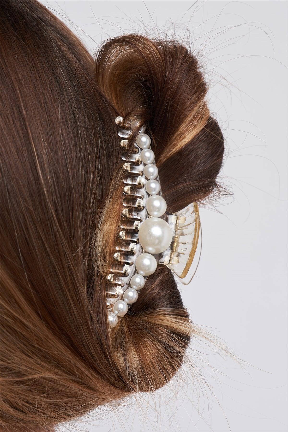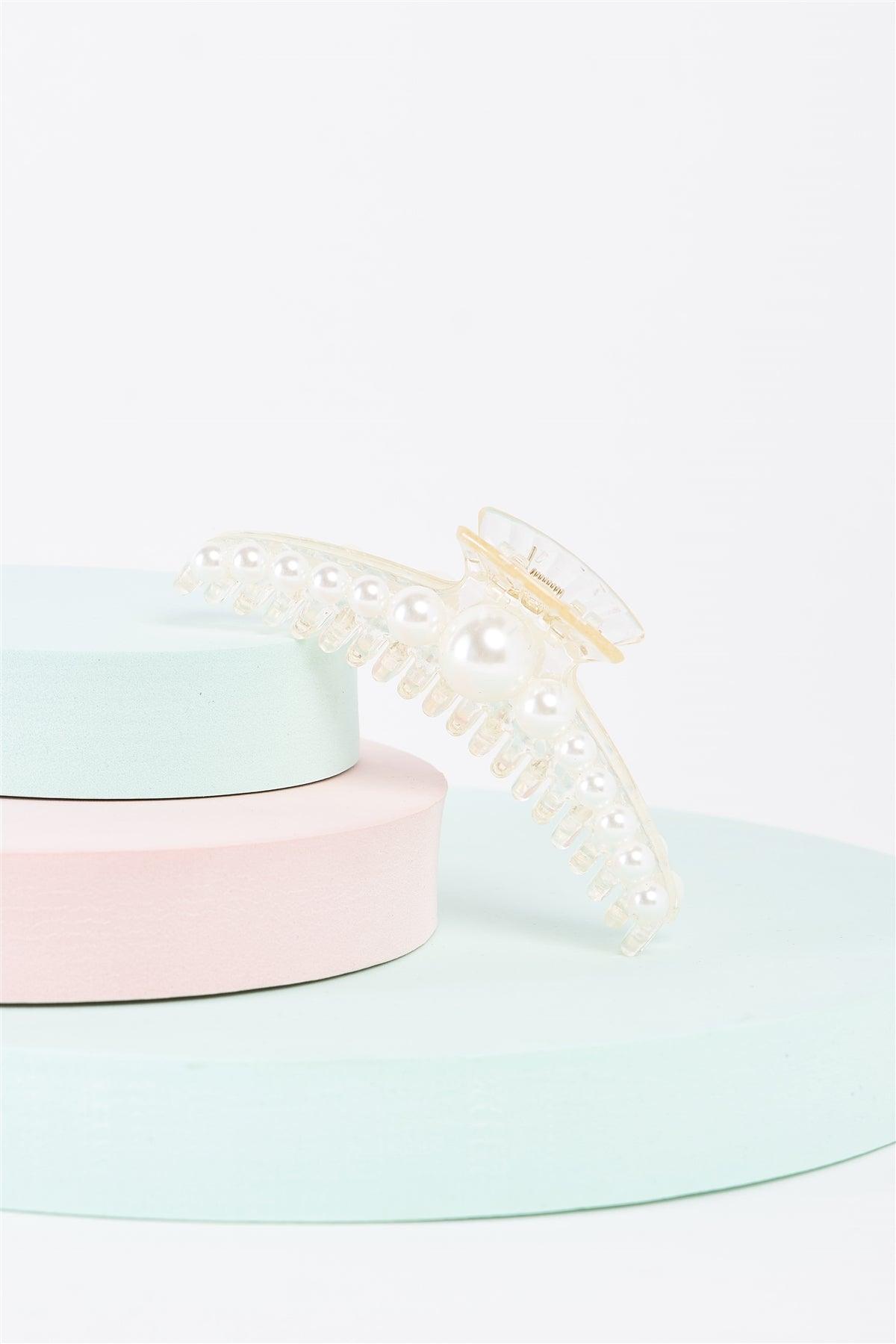 "Mermaid Hairpin" White & Pearl Large Hair Clip /3 Pieces