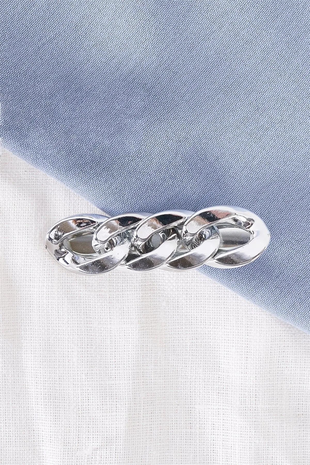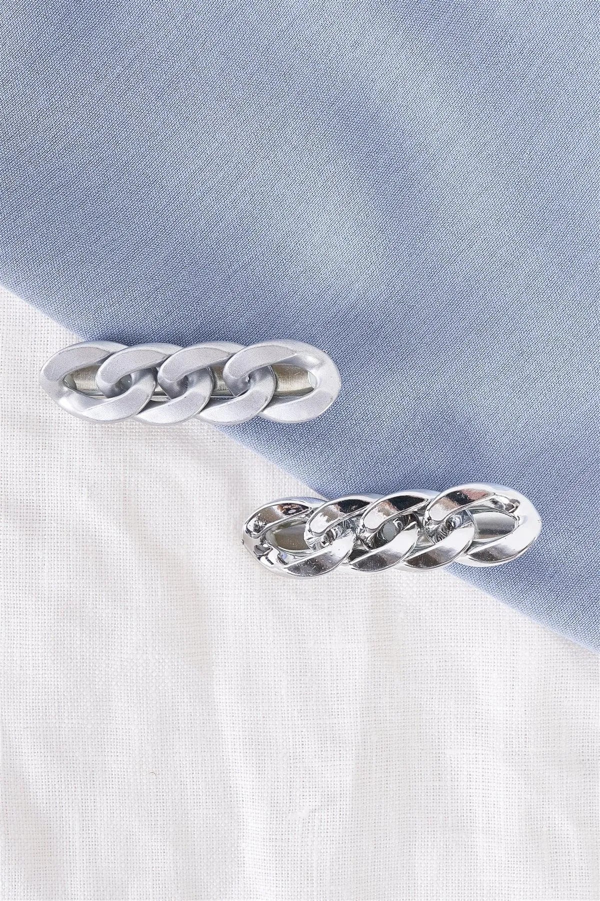 3pcs Glossy Metallic Silver Chain Link Alligator Hair Clip
