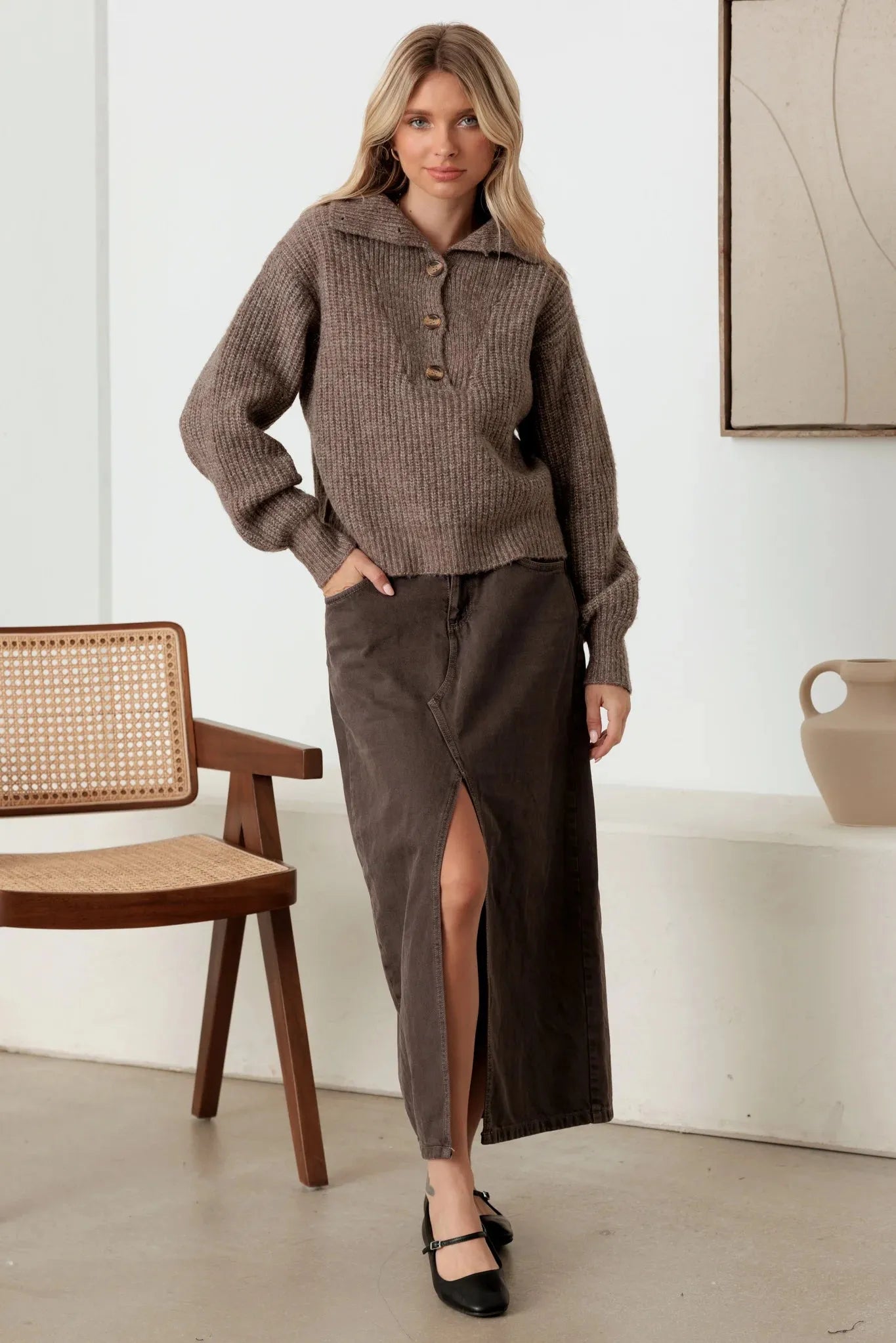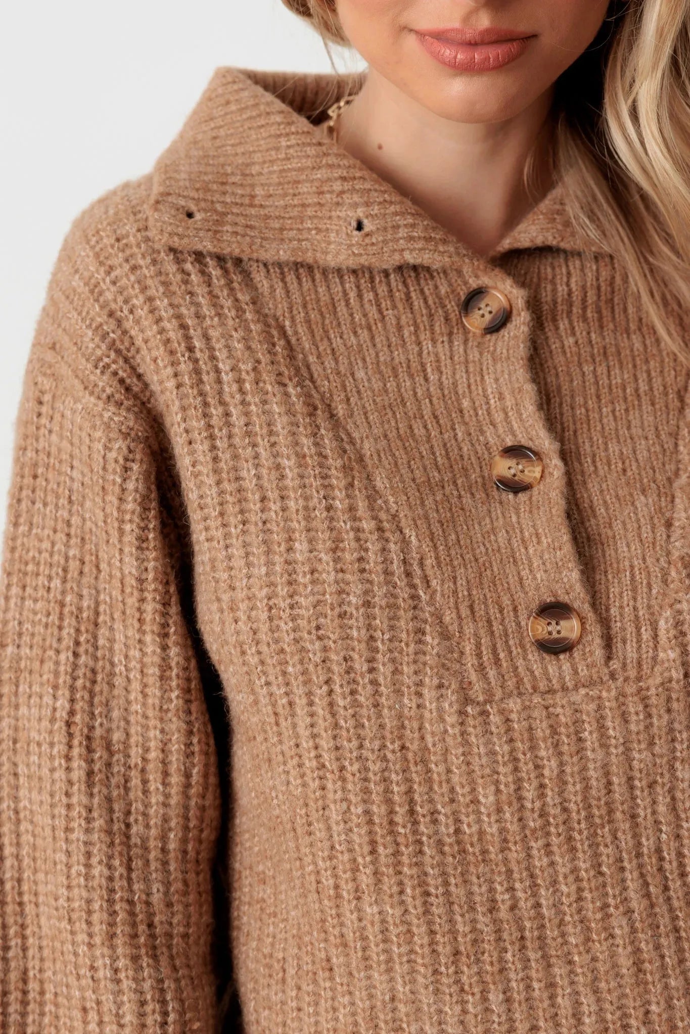 Indulge in luxury with our 100% Wool Knit Button-Up Neck Pullover Sweater. Crafted from premium wool, this sweater offers both warmth and sophistication. The button-up neck adds an exclusive touch, making it the perfect addition to any stylish wardrobe. Elevate your look with this elegant and tasteful piece.