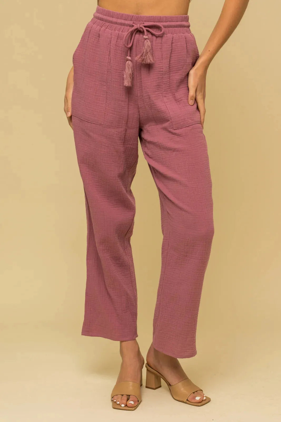 Women set, solid color, 100% Cotton, long sleeve, front buttons, elastic waist, side pocket, front tie, boho style, cute, sweet, girly, this set is a versatile and stylish choice!