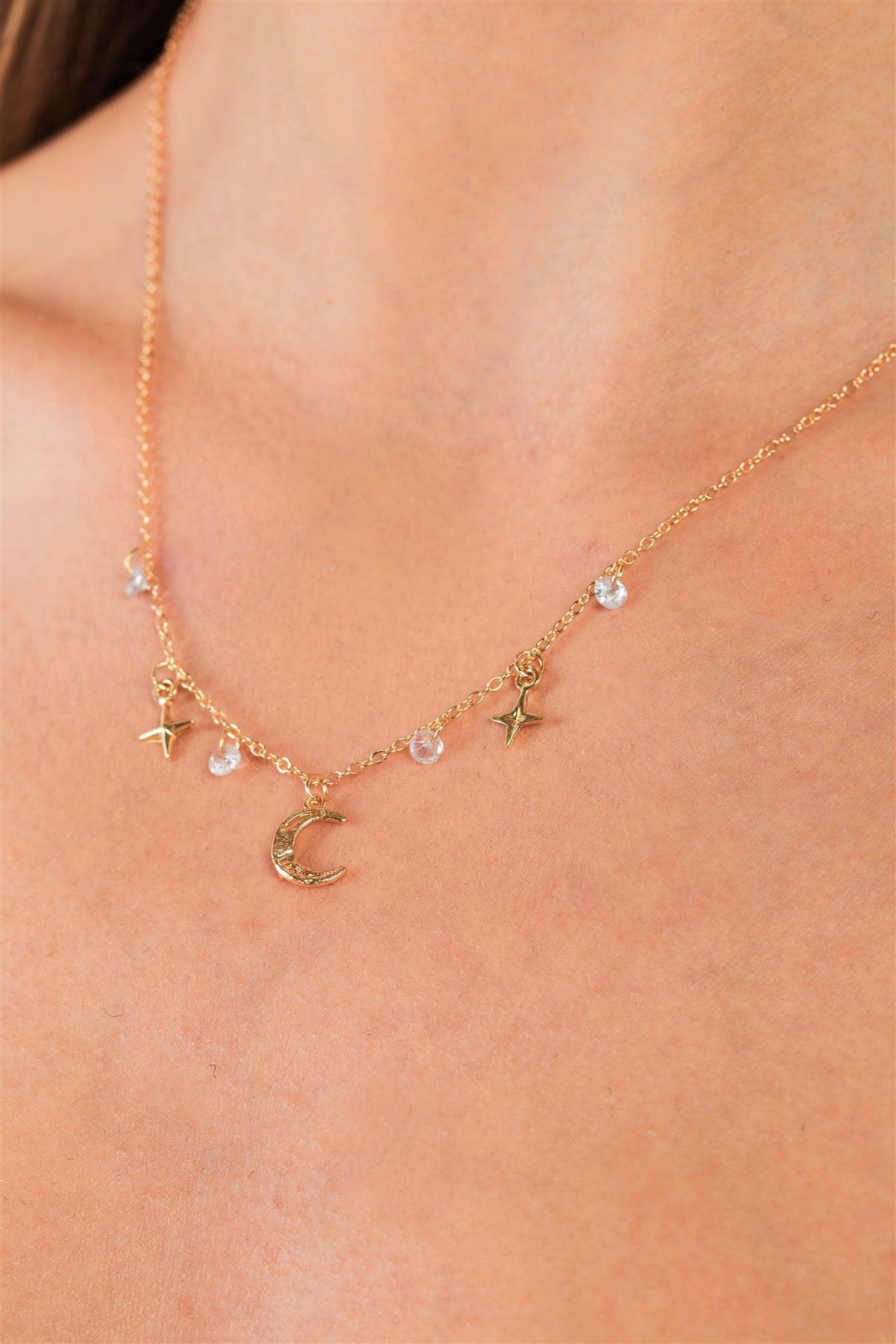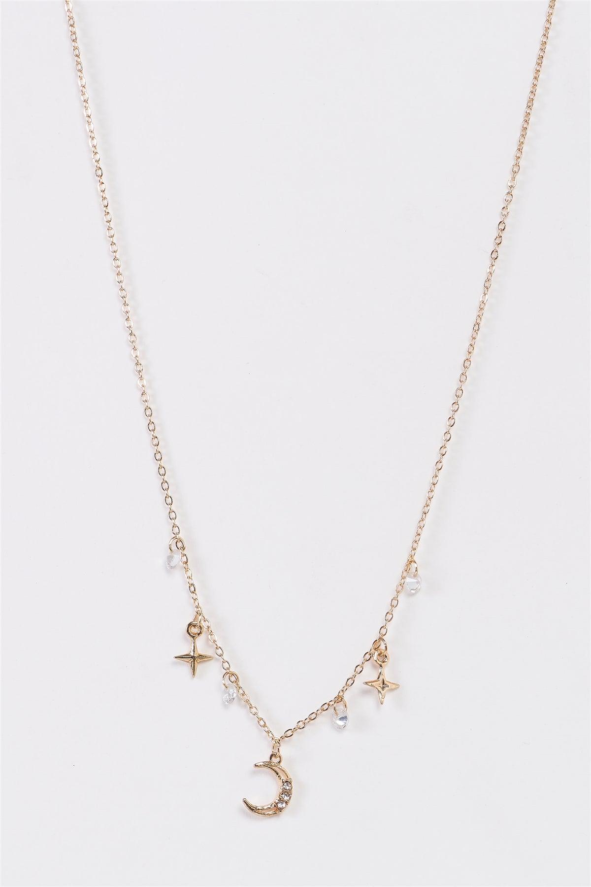 "Night Sky" Gold Diamond Star Crescent Multi Pendant Necklace