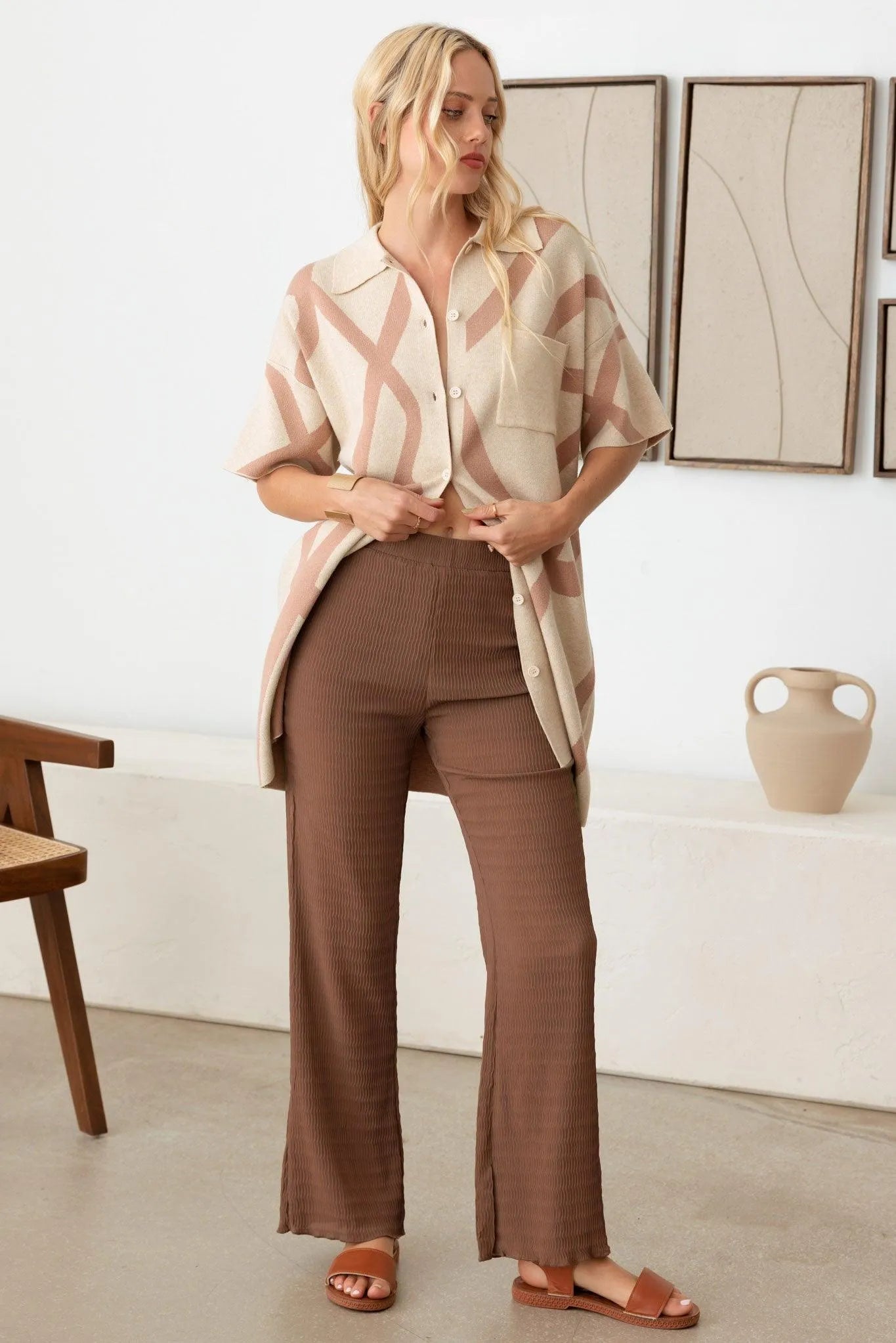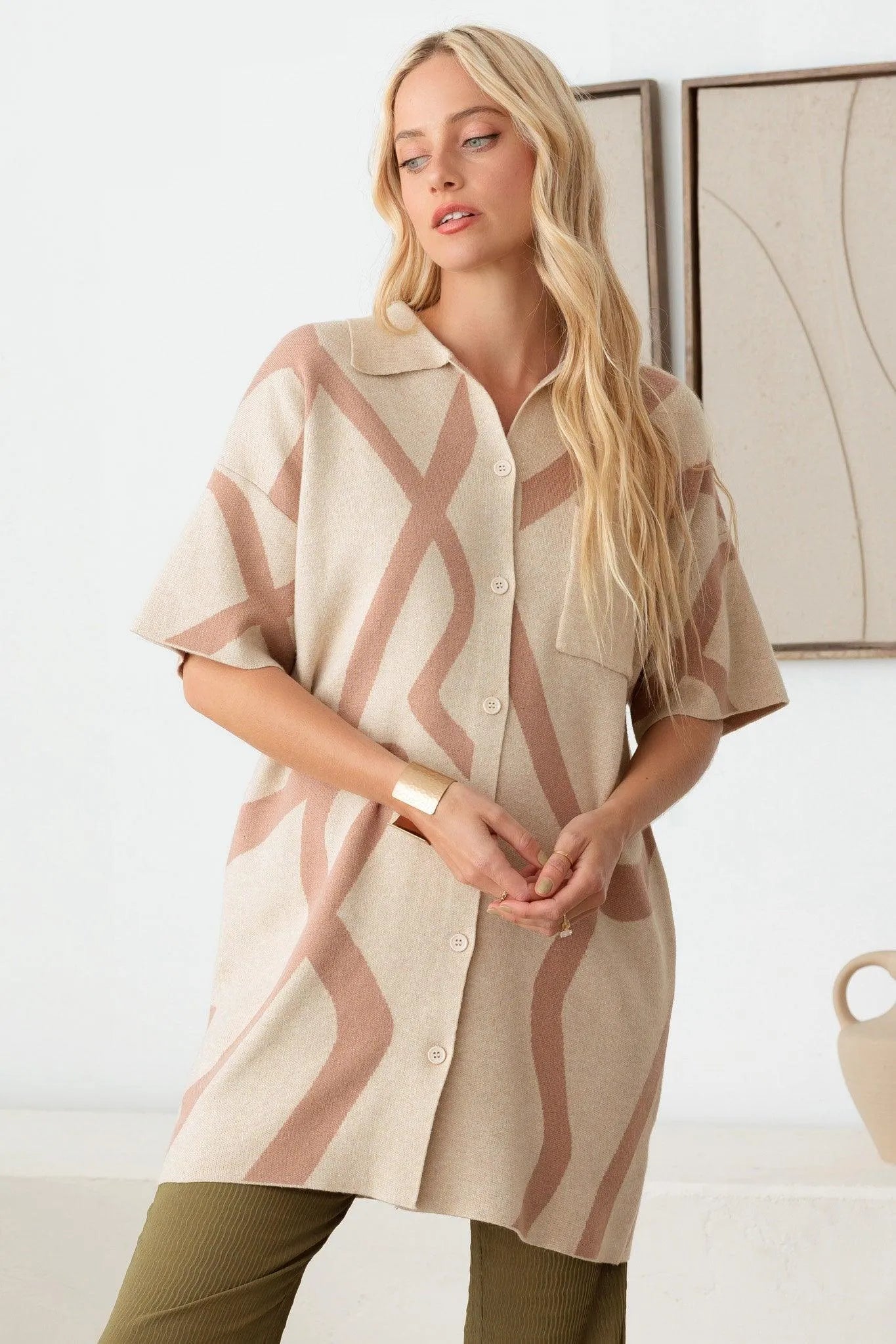 Abstract Collared Button Down Sweater Dress