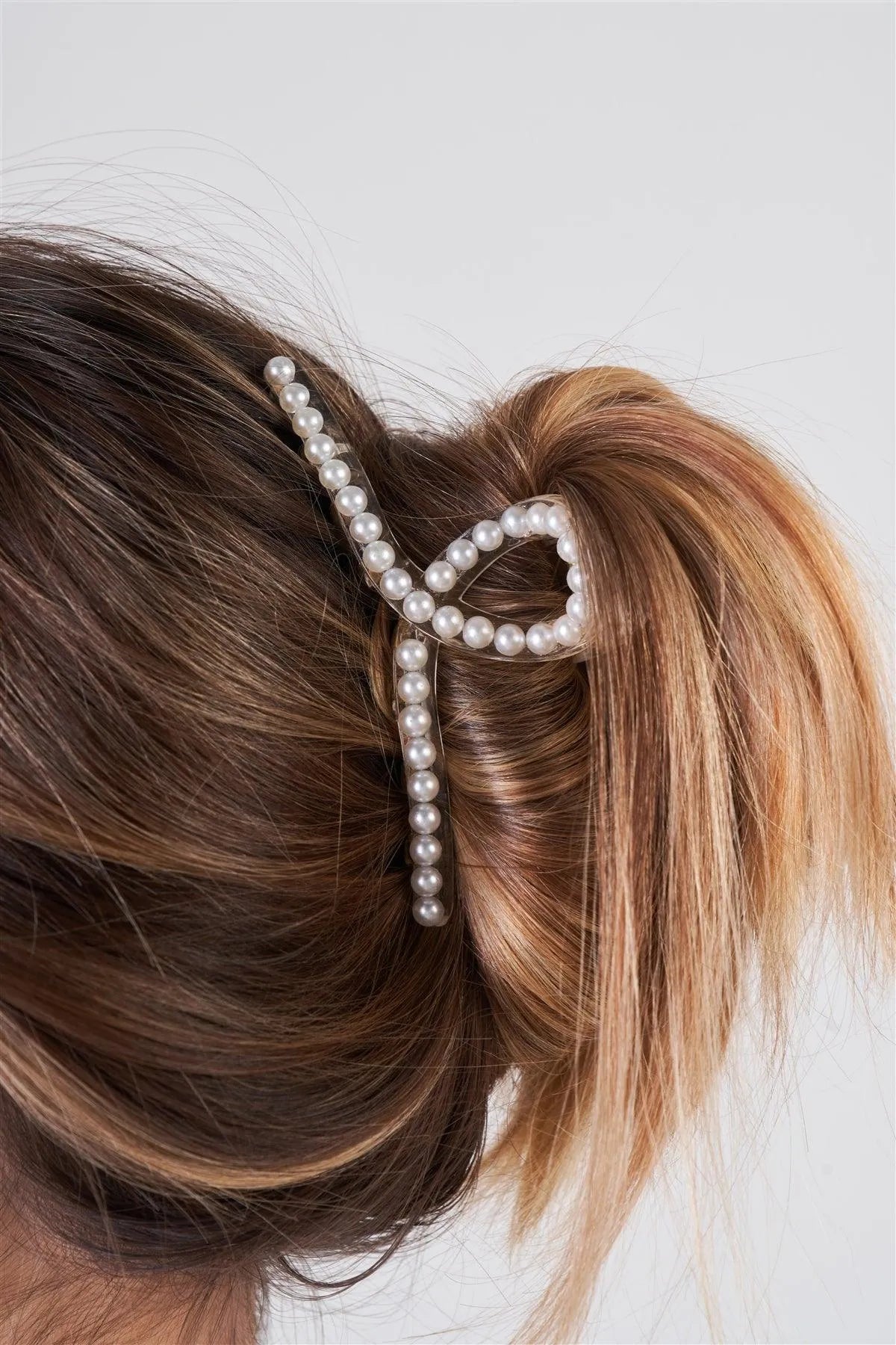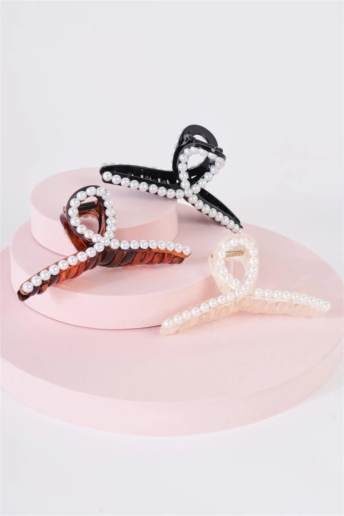 3pcs Thin Loopy Pearl Trim Claw Hair Clip Set