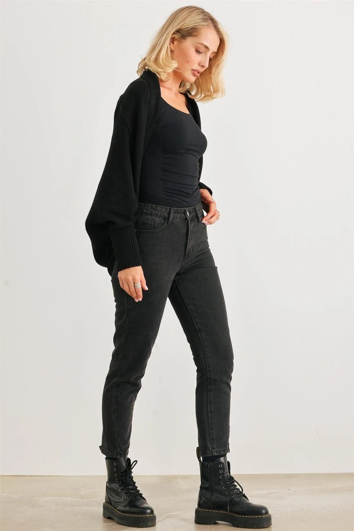 Black Knit Batwing Sleeve Open Front Cardigan /2-2-2